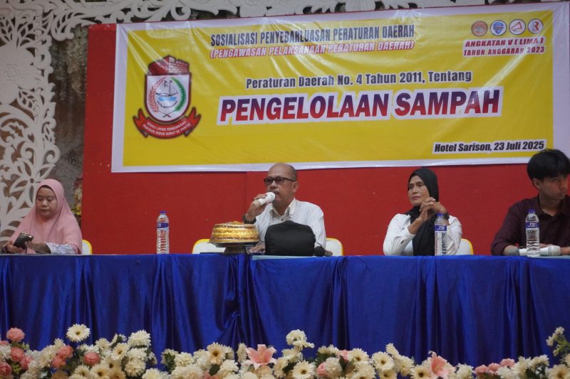 Sosialisasi ini digelar di Hotel Sarison, Rabu, 23 Juli 2025, dan dihadiri oleh berbagai elemen masyarakat, tokoh pemuda, serta perwakilan RT/RW. Tiga narasumber dihadirkan untuk memperkaya diskusi dan pemahaman peserta. Narasumber pertama, Nur Alam, menyampaikan pentingnya edukasi masyarakat sejak dini mengenai budaya buang sampah pada tempatnya serta prinsip 3R (Reduce, Reuse, Recycle). Narasumber kedua, Syarief Panjhi, SH., menjelaskan aspek hukum dan sanksi yang tercantum dalam Perda No. 4 Tahun 2011, sehingga masyarakat dapat mengetahui konsekuensi hukum jika tidak mematuhi aturan.