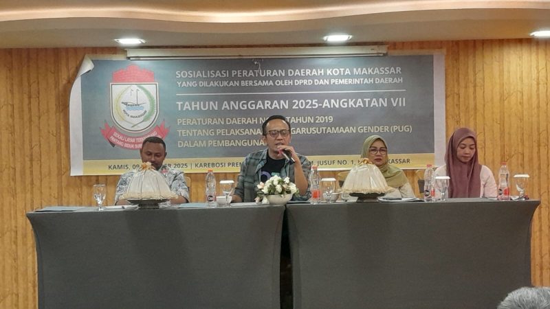 Makassar, Talinews.com – Anggota DPRD Kota Makassar dari Fraksi Partai Kebangkitan Bangsa (PKB), Basdir, S.E., kembali menunjukkan komitmennya terhadap pembangunan inklusif dan berkeadilan sosial. Kali ini, ia melaksanakan Sosialisasi Peraturan Daerah (Perda) Nomor 5 Tahun 2019 tentang Pelaksanaan Pengarusutamaan Gender (PUG) dalam pembangunan Kota Makassar. Kegiatan ini merupakan bagian dari agenda resmi DPRD dan Pemerintah Daerah Kota Makassar dalam tahun anggaran 2025, yang dilaksanakan di Hotel Karebosi Condotel.