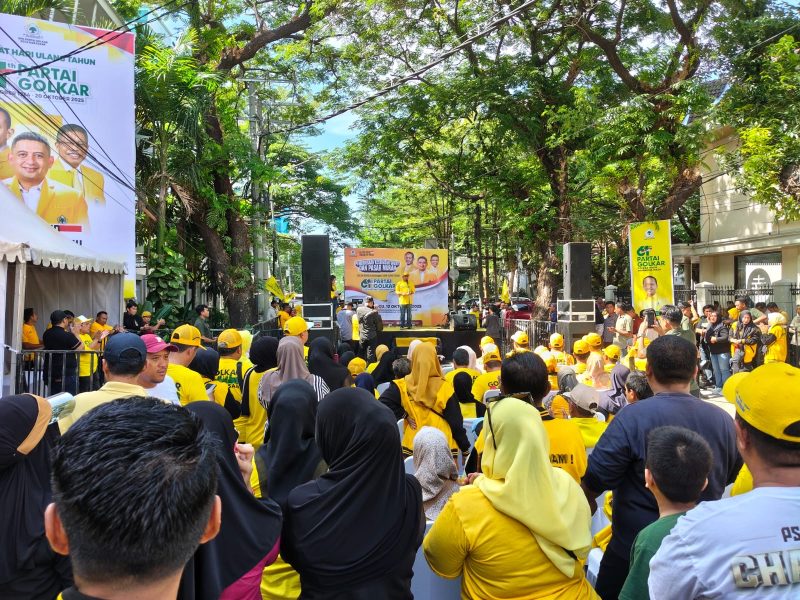Makassar, Talinews.com – Ribuan warga memadati halaman Sekretariat DPD II Partai Golkar Makassar di Jalan Lasinrang, Minggu (12/10/2025) pagi. Antusiasme masyarakat begitu tinggi mengikuti kegiatan pasar murah dalam rangka memperingati Hari Ulang Tahun (HUT) ke-61 Partai Golkar. Sejak pukul 07.00 WITA, antrean panjang sudah tampak di depan lokasi acara. Warga datang membawa kupon pembelian sembako, sementara sebagian lainnya menunggu di bawah tenda yang disiapkan panitia.
