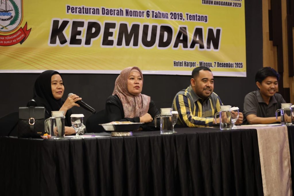 Makassar, Talinews.com – Andi Suharmika, S.H., Wakil Ketua DPRD Kota Makassar dari Fraksi Partai Golkar, kembali menunjukkan komitmennya dalam memperkuat kapasitas pemuda melalui kegiatan sosialisasi peraturan daerah. Kegiatan ini mengangkat Perda Nomor 6 Tahun 2019 tentang Kepemudaan, yang menjadi dasar pengembangan generasi muda sebagai motor penggerak pembangunan di Kota Makassar.
