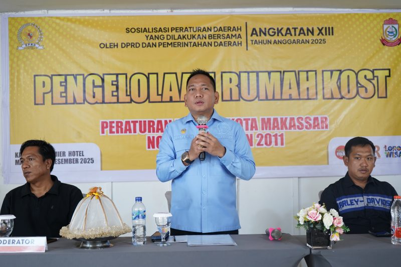 Makassar, Talinews.com – Ketua Komisi B DPRD Kota Makassar, Ismail, S.H., menekankan pentingnya pengelolaan rumah kost yang tertib dan sesuai regulasi daerah guna menjaga keamanan serta kenyamanan lingkungan. Hal tersebut disampaikannya dalam kegiatan pemaparan Peraturan Daerah Kota Makassar Nomor 10 Tahun 2011 tentang Pengelolaan Rumah Kost yang digelar di Karebosi Premier Hotel Makassar, Minggu (7/12/2025).